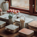 The GRECH & CO. bento box offers leakproof, organized mealtime storage with easy-to-use flip tabs and removbale 3 compartment tray. Made in durable and eco-friendly materials in the signature plaid, ginham and floral Lille Cottage Club prints.