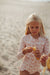 The Long Sleeve Rashguard Ruffle Swimsuit by GRECH & CO. combines style and functionality with its long sleeves, a front zipper with a pull tab for ease, and a zipper pocket for added comfort. Made from GRS-certified recycled fabric and offering UPF 50+ sun protection, this sustainable swimsuit keeps your little one safe while playing under the sun.